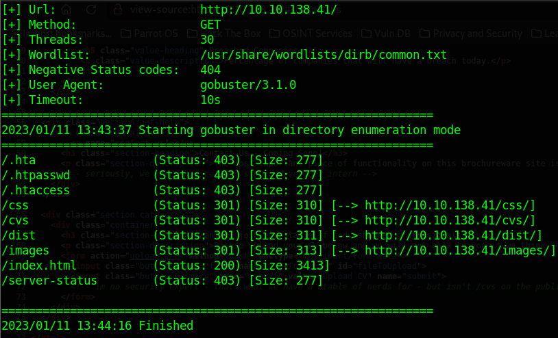 gobuster dir -u http://10.10.138.41/ -w /usr/share/wordlists/dirb/common.txt -t 30
