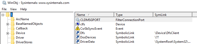 "WinObj is a 32-bit Windows NT program that uses the native Windows NT API (provided by NTDLL.DLL) to access and display information on the NT Object Manager's name space." (official definition)