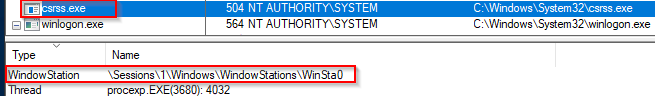 Remember that Session 0 is the OS session and Session 1 is the User session. Also recall that there will be at least 2 csrss.exe processes running, one for each session. Note Session 1 will be for the first user logged into the system.